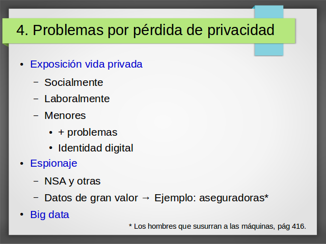 Problemas que pueden acontecer por pérdidas de privacidad (consentida o robada).